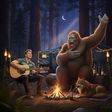 A luminous mushroom towers over an enchanted forest, its cap glowing with a kaleidoscope of cosmic patterns, casting ethereal light on the surroundings. This shirt's design is mystical, blending the familiar with the magical.