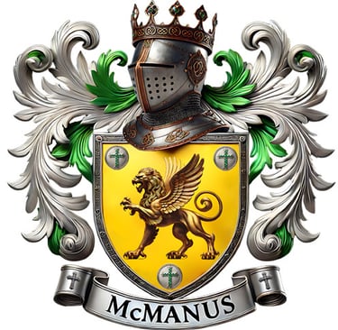 Embrace the rich and regal history of the McManus clan with striking family crests, a symbol of bravery, nobility, and ancient Celtic roots reflecting the valor that has shaped a proud and royal heritage. A collection of 9 designs.