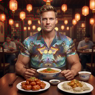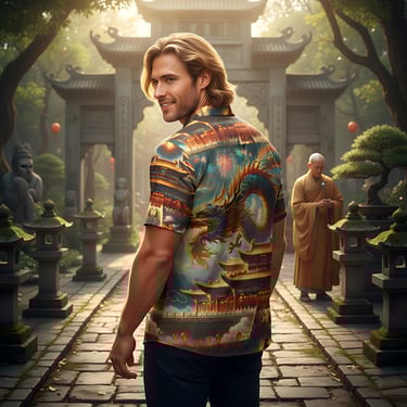Eddy McManus's exclusive series of Chinese Dragon button-down shirts, a vibrant homage to ancient mythology and contemporary style.