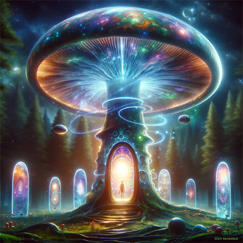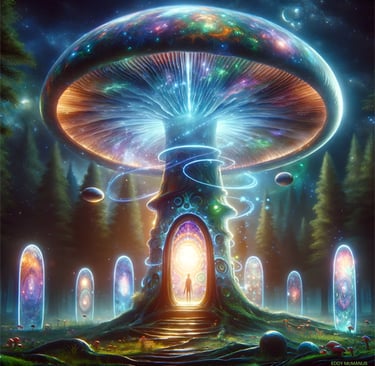 A series that captures the essence of cosmic exploration and otherworldly wonder. Each piece is a gateway to the unimaginable, where towering mushrooms glow with magical wonder! A collection of 12 designs.