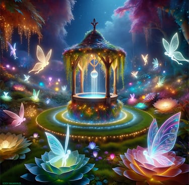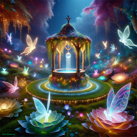 A magical garden where faeries gather to grant magical blessings around a well of dreams aglow with the magic of wishes! A collection of 12 designs.